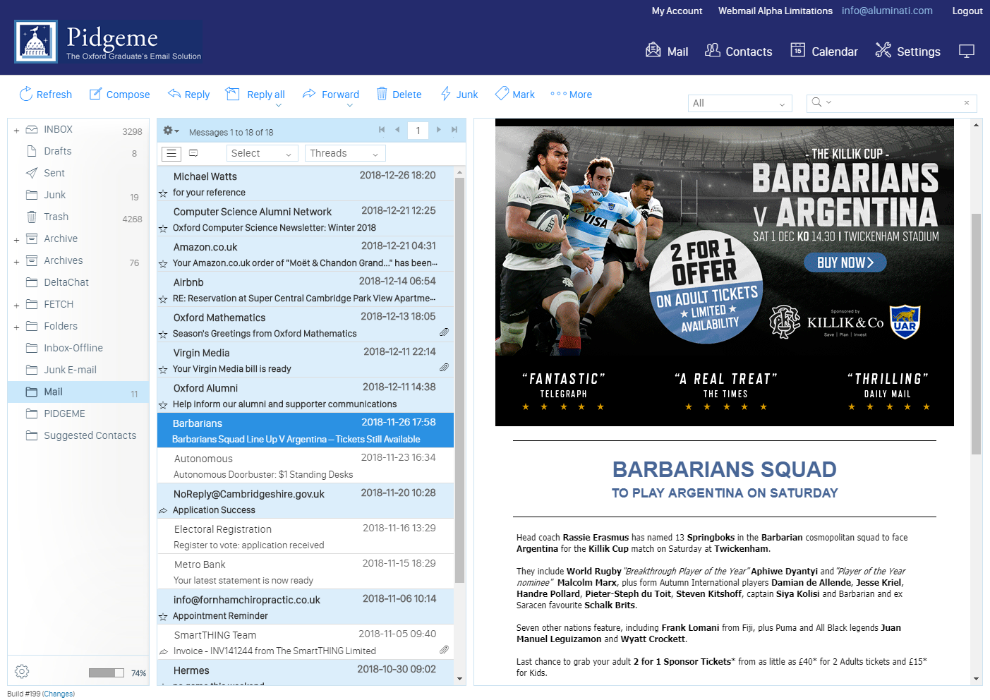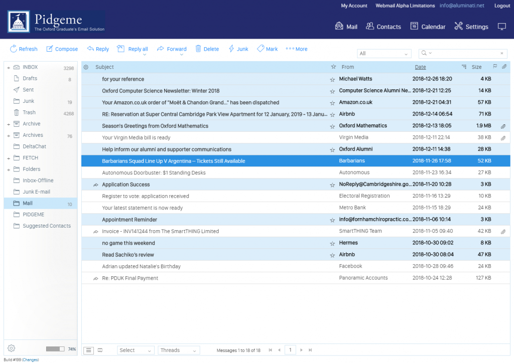 New webmail has a completely refreshed look and feel with many new touches including three main mailbox views to suit your screen size. It also resizes when viewed on mobiles although our mobile recommendation continues to be using a proper IMAP connection from your premium Aluminati account to your favourite mail app.